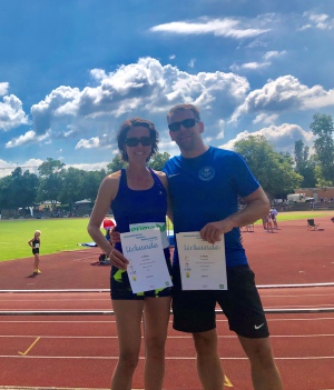 Landau. In die südlichste Spitze von Rheinland-Pfalz führte der Weg zu den diesjährigen Südwestdeutschen Seniorenmeisterschaften. Mit Jens und Elena Dötsch waren zwei Athleten des SV am Start. Jens startete mit dem Speerwurf und aufgrund des ungünstigen Zeitplans auch zeitgleich im Weitsprung. Schuhwechsel und Umstellungsfähigkeit wurden in der ersten Stunde der Meisterschaft verlangt. Dies gelang wider Erwarten sehr gut.